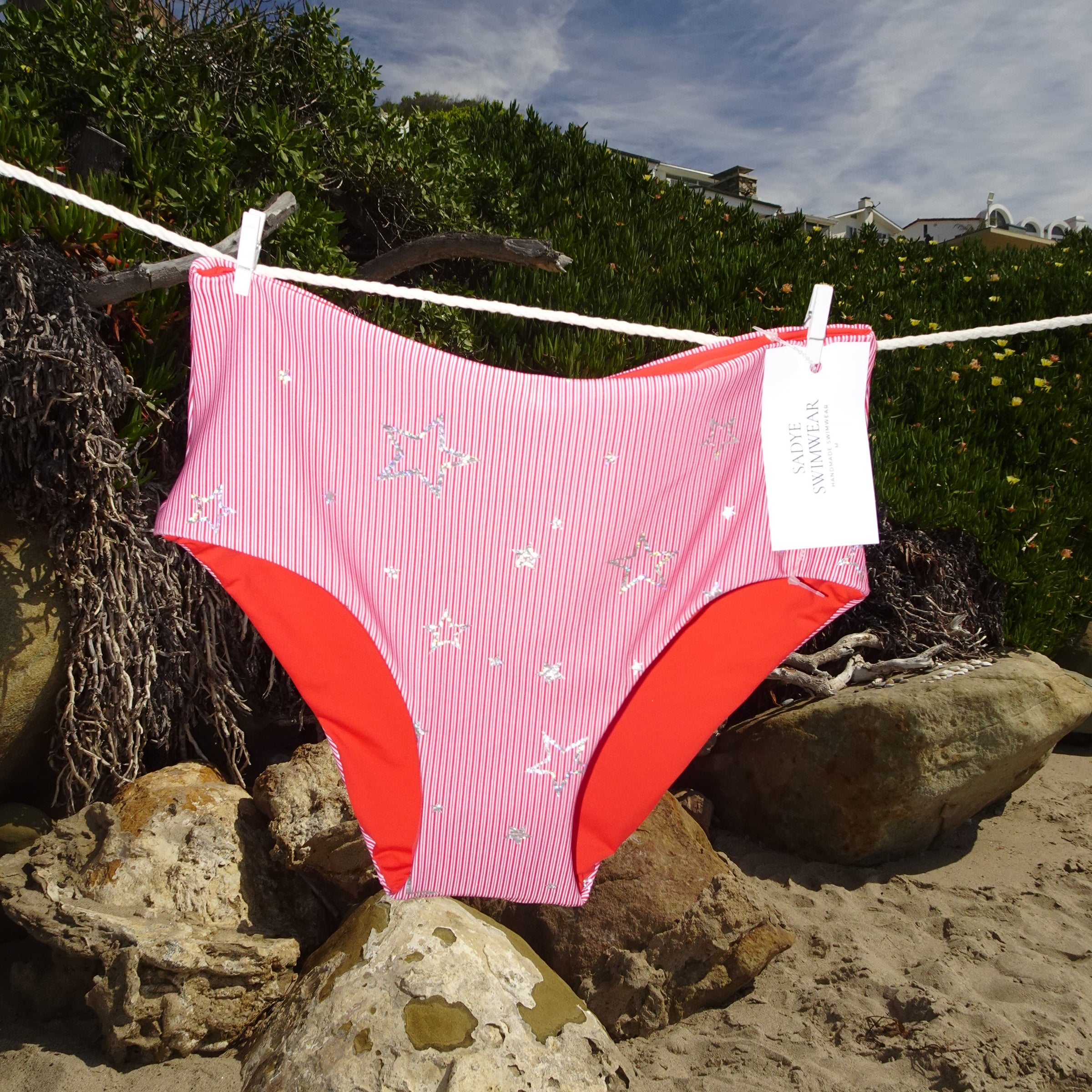 Each bikini is created from idea, to pattern, to fabric, to hand cutting to hand sewing, one suit at a time.